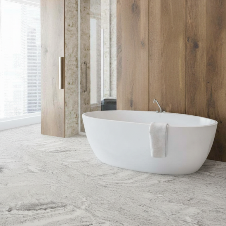 Marmer is een luxe materiaal met een uniek aderpatroon. Het voegt elegantie en tijdloze schoonheid toe aan elke badkamer. Onze marmeren vloeren zijn verkrijgbaar in verschillende afwerkingen en zijn perfect om een luxe badkamerlook te creëren.